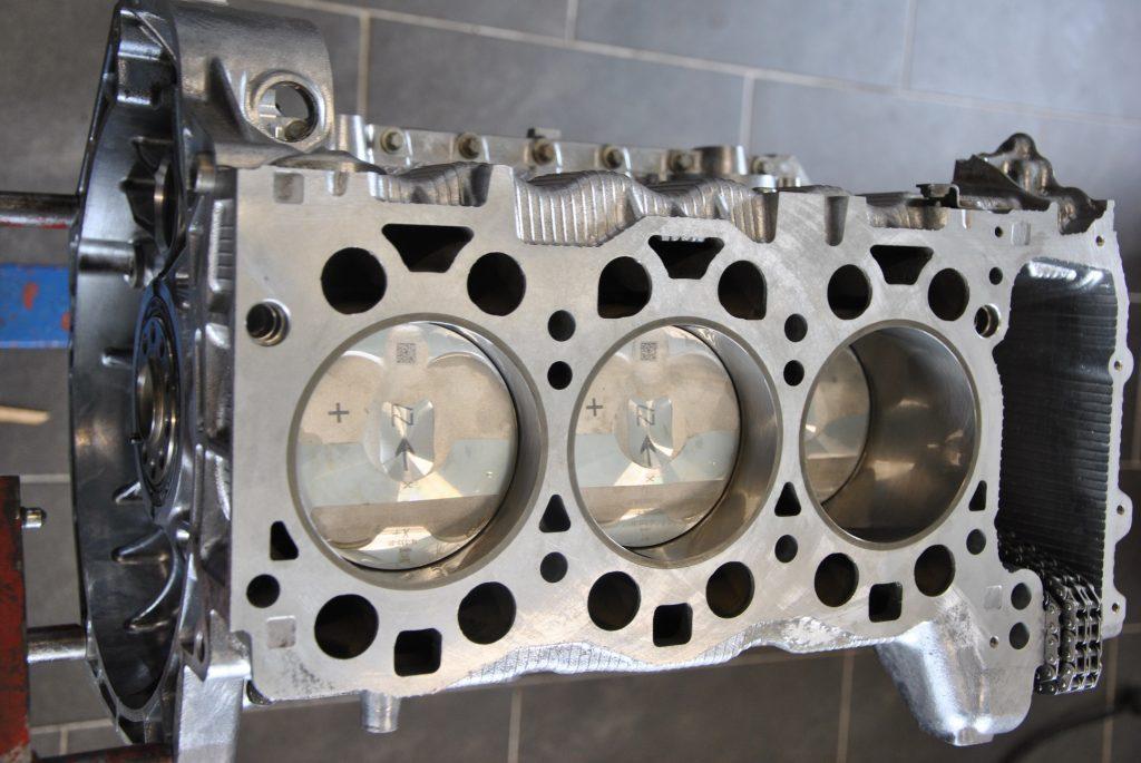 • Motorblock aufgespindelt und Stahlbuchsen gesetzt