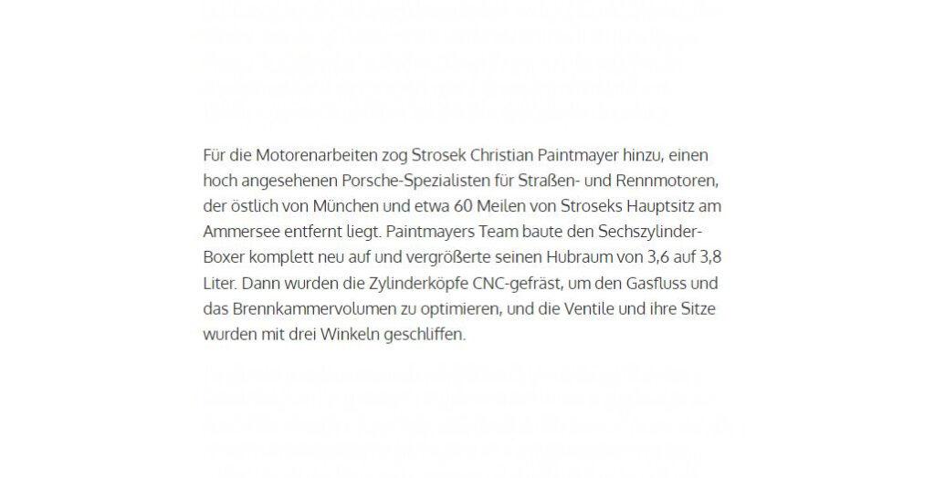 Für Herrn Strosek aus München durften wir im Rahmen eines Projekts dem Motor eines klassischen Porsche 964 3.6l mehr Leistung verschaffen. Der Porsche 964 Motor wurde komplett neu aufgebaut und eine Hubraumerweiterung auf 3.8l mit daraus folgender Leistungssteigerung durchgeführt. Mehr können Sie hier im Magazine „Excellence – about Porsche“ nachlesen.