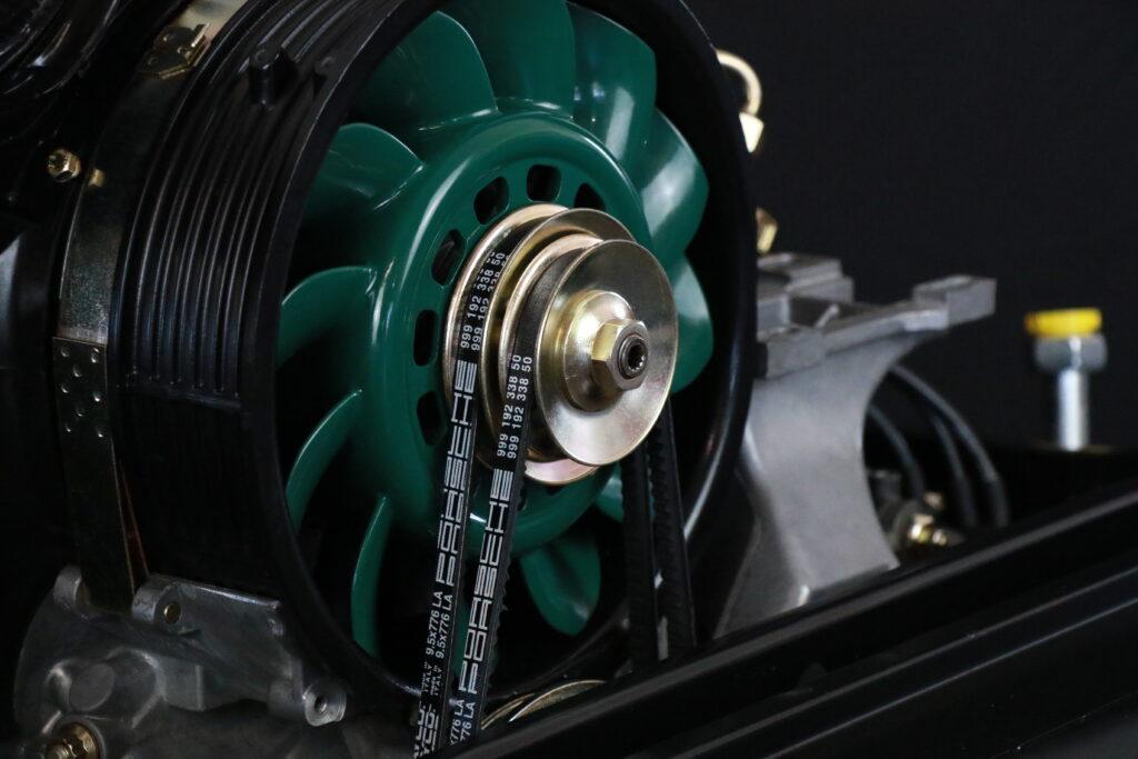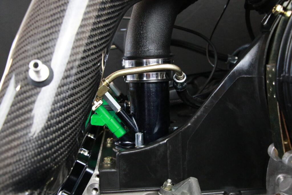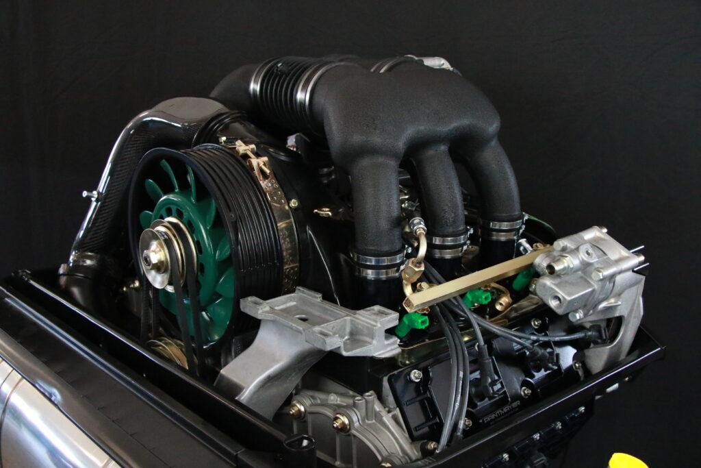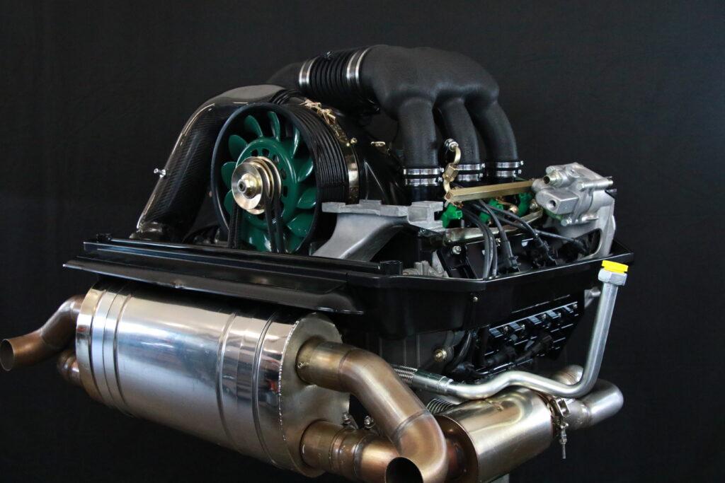 Außerdem werden zusätzlich die Einlasskanäle der Zylinderköpfe aufgearbeitet, Sportventilfedern verbaut und längere Ansaugtrichter, gefräst aus Aluminium, verwendet. Des Weiteren wurde dieser Porsche 964 Motor mit einer eigens entwickelten Ansauganlage inkl. elektronischer Drosselklappe ausgestattet.