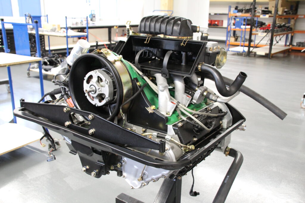 Hier wurde eine Motorüberholung Porsche 911 2.7l durchgeführt. Wir ersetzen bei einer Porsche Motorüberholung immer alle Verschleißteile, unter anderem zählen dazu die Hauptlager, Pleuellager und -schrauben, Zwischenwellenlager, Steuerketten und die Gleitschienen. Um den Motor optisch wieder glänzen zu lassen, wurden alle Schrauben und Kleinteile Gold galvanisiert und die Bleche in schwarz pulverbeschichtet. Für mehr Standhaftigkeit ersetzten wir die Zylinderkopf Stehbolzen durch von uns optimierte Stehbolzen. Die Ventilführungen der Zylinderköpfe wurden ebenso ersetzt, hierbei wurden die Führungen ausgebohrt, neue eingesetzt, gehont und die Ventilsitze wurden nachbearbeitet. Des Weiteren wurden die Zylinderköpfe instandgesetzt, indem die Zylinderköpfe und Ventile mit Glasperlen gereinigt wurden und anschließend die Ventile neu poliert und eingeschliffen wurden. In unserem Fall hier wurden die Einlassventile durch Neue ersetzt. Die Zylinderköpfe wurden mittels CNC-Maschine plangefräst und es wurden neue Ventilfedern verbaut. Selbstverständlich wurden bei der Porsche Motorrevision alle Dichtungen ersetzt, sowie neue Zündkerzen und Ölrücklaufrohre montiert. Es wurden neue Zahnräder der Nocken- und Zwischenwelle verbaut und die Lichtmaschine überholt. Alle sechs Kolben des Porsche 911 2,7l wurden ersetzt.