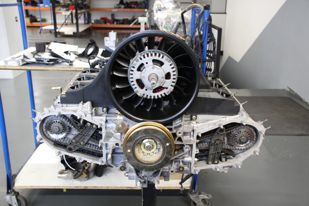 Dabei wurden alle Lager, Pleuelschrauben und Steuerketten durch neue ersetzt. Die alten Ventilführungen des Porsche 964 wurde ausgebohrt und neue eingesetzt, sowie die Ventilsitze bearbeitet. Es wurden alle Gleit- und Spannschienen ausgetauscht, sowie die Zahnräder der Nocken- und Zwischenwelle ersetzt.